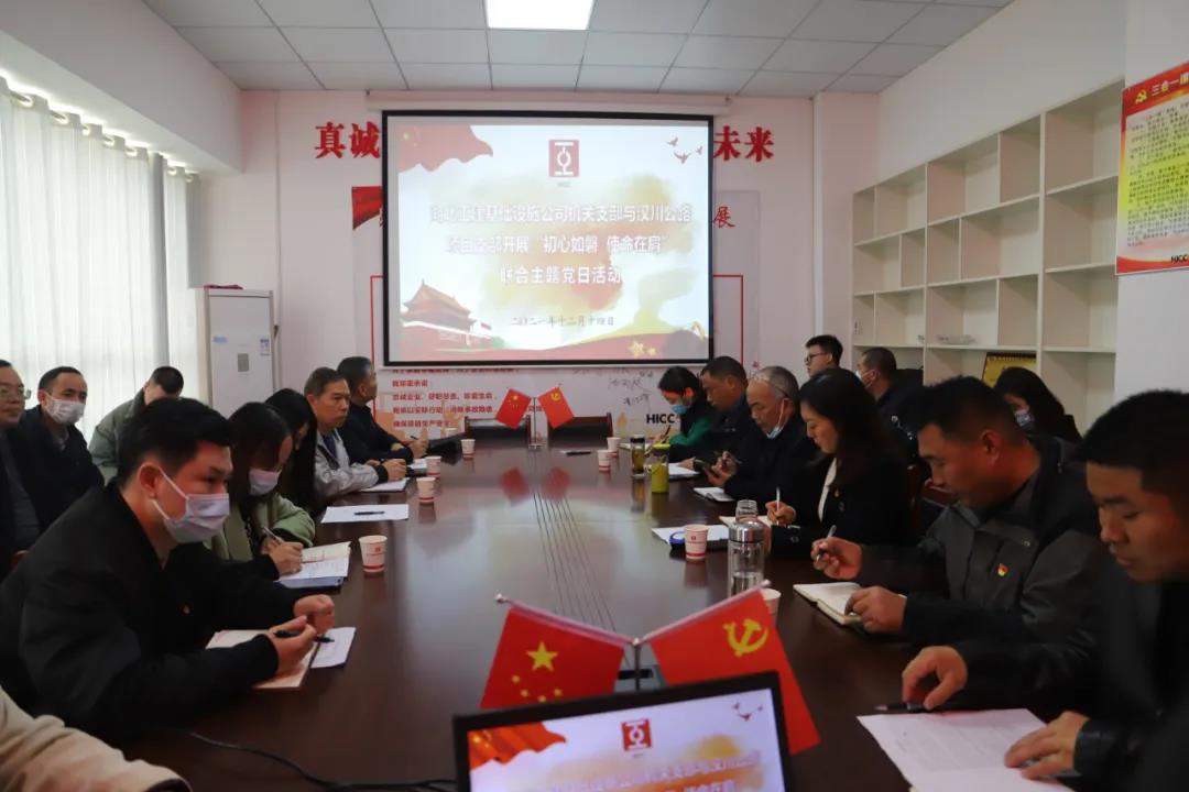 12月14日,公司機關黨支部與漢川項目黨支部聯合開展“初心如磐 使命在肩”主題黨日活動。活動由機關黨支部書記余錦風主持,公司黨委委員、紀委書記馮文漫出席并講話。