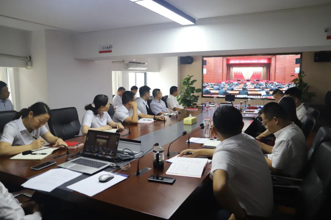 公司機關主會場參會人員集中觀看警示教育片。